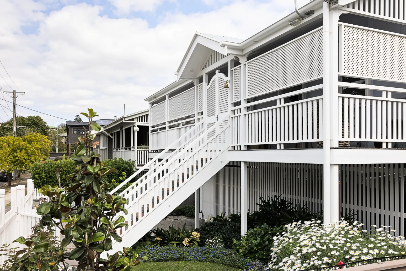 The original home is all on one level and features a restored front stairway and verandah, which were preserved as part of an extension to maintain the house's character. Additionally, an access ramp at the rear of the property connects to the main level and opens up the spacious interior.